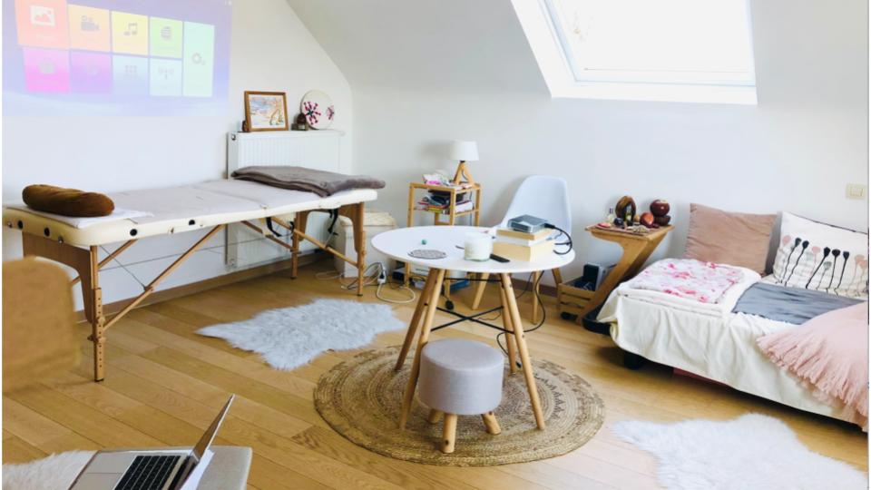 Depuis 2024, je t'accueille principalement dans mon espace virtuel en ligne qui bénéficie des mêmes vibrations. L'énergie ne connaît pas de frontière. Tous les contenus sont projetés pendant les formations. Tu reçois ensuite une présentation ultra complète à la fin de chaque session.