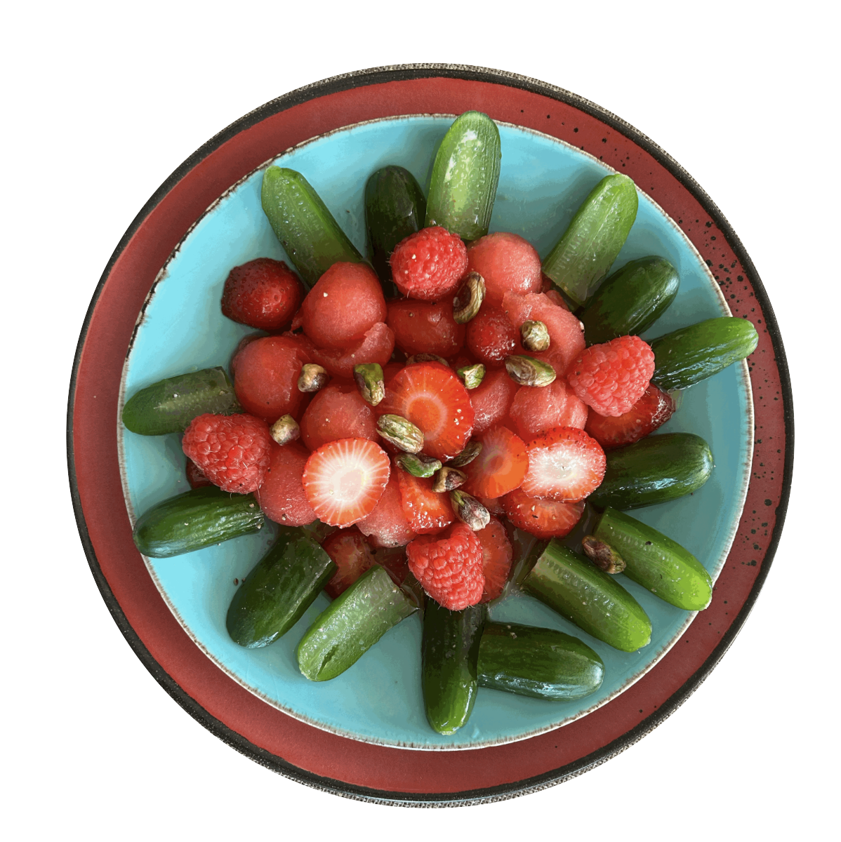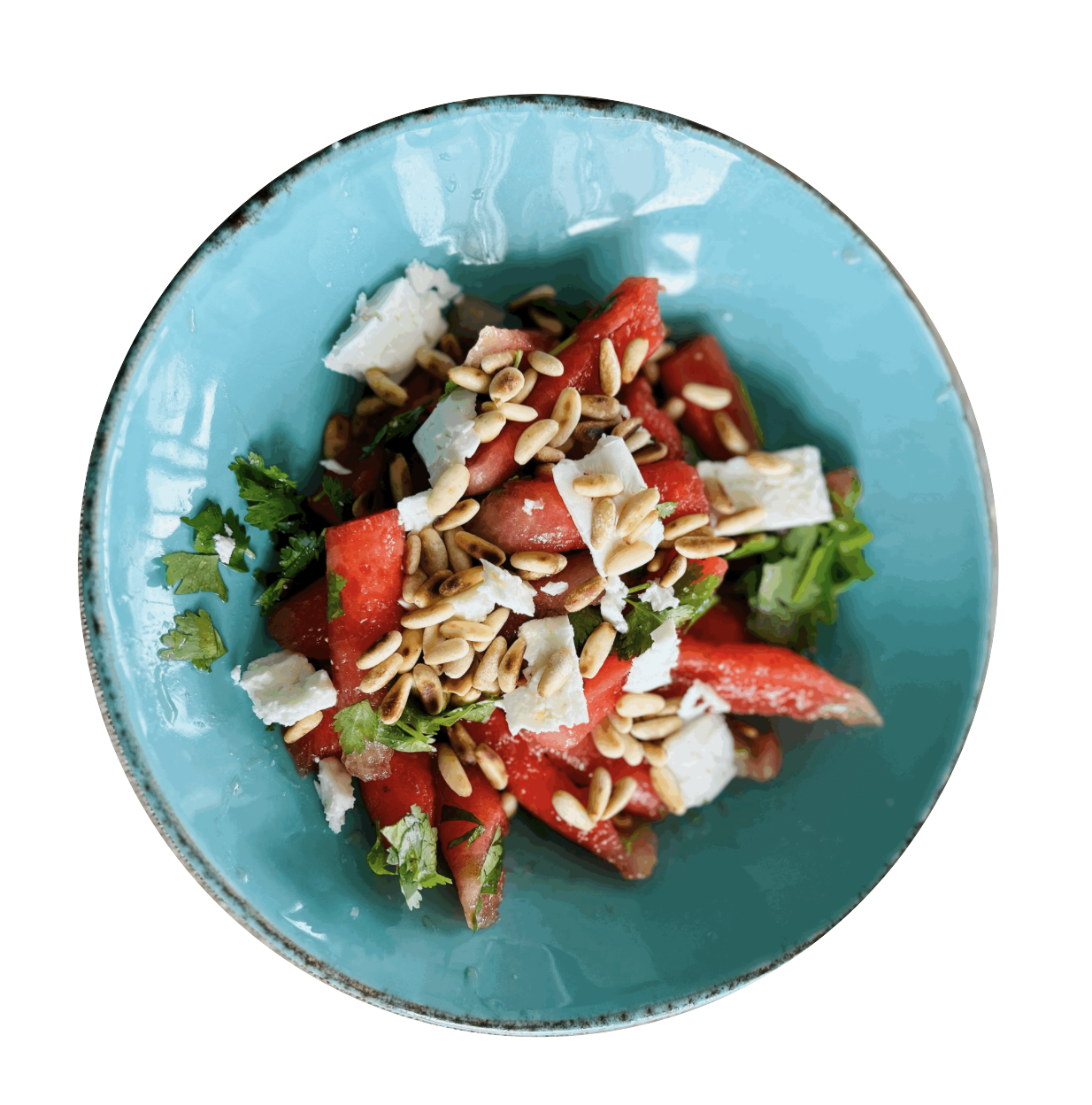 - Verser l'assaisonnement sur la pastèque, rajouter la coriandre et mélanger.