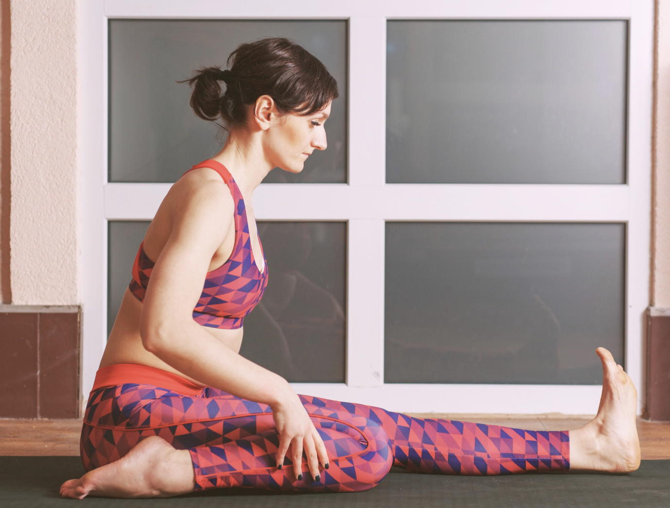 Triang Mukha Eka Pada Paschimottanasana, la pince, est une position pour étirer tout l’arrière de ton corps, tout en te reconnectant à toi-même.